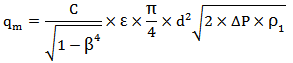 差壓式流量計流量公式中qm為質量流量,kg/s;qv為體積流量,m3/s;C為流出系數;ε為可膨脹性系數;β為直徑比,β=d/D;d為工作條件下節流件的孔徑,m;D為工作條件下上游管道內徑,m;△P為差壓,Pa;ρ1為上游流體密度,kg/m3