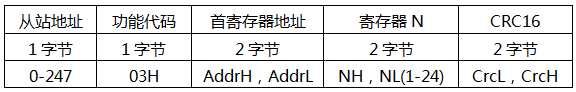 a、通信方式為RS485(1個起始位,1個或2個停止位,8位數據,無奇偶校驗)