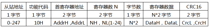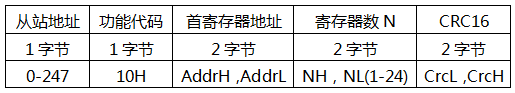 CRC16:循環冗余校驗,校驗從從站地址到數據區最后一個字節,計算多項式碼為A001(hex)。