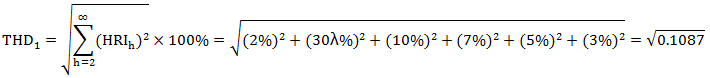 以上兩個公式中:λ為含移相因素和畸變因素的綜合功率因數;THD1為電流總諧波畸變率,%;HRIh為第h次諧波電流含有率,%。