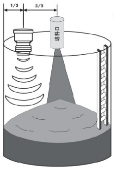 ②在安裝探頭時需考慮容器的形狀。如果探頭安裝不正確,一定形狀的容器將產生二次回波。這類問題主要集中在圓錐形以及球形罐頂部。這種特殊的形狀可以將發射出的回波再聚焦放大產生錯誤讀數。選擇正確的安裝位置可以解決這一問題。請見圖b。