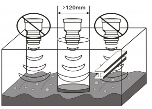 ⑥表面平靜無波的液體,超聲波測量將獲得最佳效果。如果液體表面有雜物、氣泡或較大波動時,應加裝導波管。導波管直徑應大于120mm,且無接頭。如圖g。
