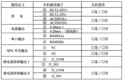 ①3路限位 NPN 集電極開路控制輸出設定,用于料位、液位控制