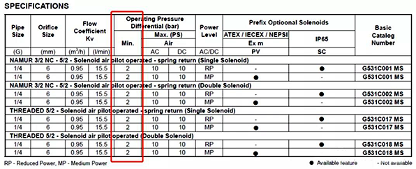 活塞F克服彈簧A的彈力向右運(yùn)動(dòng),當(dāng)進(jìn)氣口1的氣源壓力過(guò)小時(shí),A的彈簧力大于氣源壓力產(chǎn)生的推力,活塞F將無(wú)法動(dòng)作;所以電磁閥有一個(gè)最小動(dòng)作壓力,ASCO 531系列為2Bar;