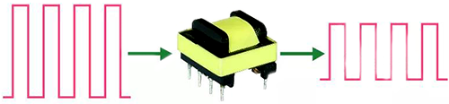 而在開關電源電路里,高頻變壓器傳輸的是高頻脈沖方波信號。