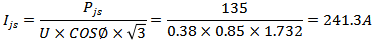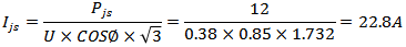 Pe為額定功率,等于全部回路功率之和,考慮三相不平衡的情況下,Pe×kx不一定等于Pjs(說明:kx為需要系數;COSφ為功率因數;Ijs為計算電流;Pjs為計算功率。注:需要系數和功率因數根據實際情況或者規范要求取值)。