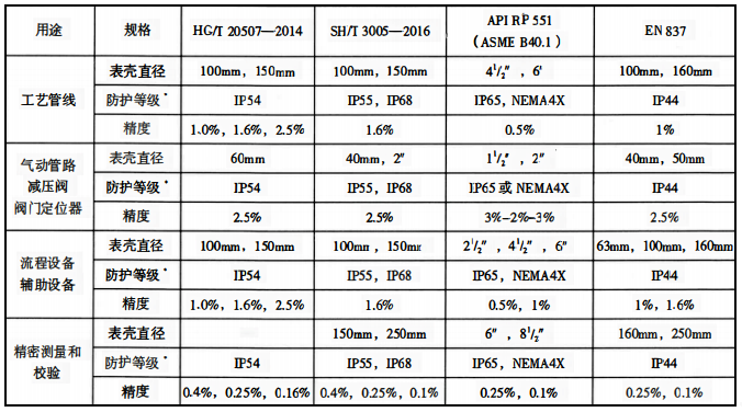 作為流程工業(yè)的石油化工行業(yè),現(xiàn)場工況涉及高溫、高壓、腐蝕、黏稠、振動等,建議選擇流程工業(yè)壓力表,確保壓力表能夠正常安全的工作。目前的壓力表制造標(biāo)準(zhǔn)傾向于一般壓力表的規(guī)范,同時部分標(biāo)準(zhǔn)年代久遠。為了適合新技術(shù)、新裝置、新方案,在選型過程中可以借鑒國際標(biāo)準(zhǔn),滿足流程工業(yè)選用壓力表的技術(shù)要求。