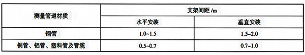 15、儀表管道應(yīng)采用管卡固定在支架上。當(dāng)管道與支架間有相對(duì)運(yùn)動(dòng)時(shí),應(yīng)在管道與支架間加軟墊。支架間距宜符合表1。