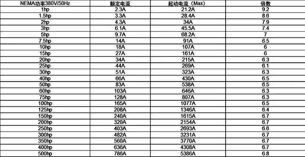 在MG 1-2021 Motors and Generators中關于電動機沖擊電流inrush current的描述如下:The values in the previous tables are rms symmetrical values, i.e., average of the three phases. There will be a one-half cycle instantaneous peak value which may range from 1.8 to 2.8 times the above values as a function of the motor design and switching angle. This is based upon an ambient temperature of 25°C.