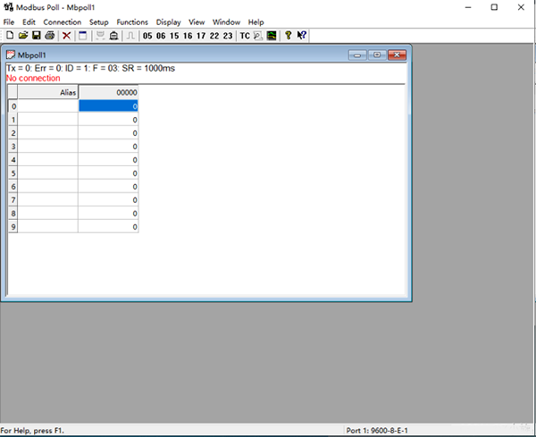 ID=1表示模擬的Modbus子設備的設備地址,圖中地址為1;