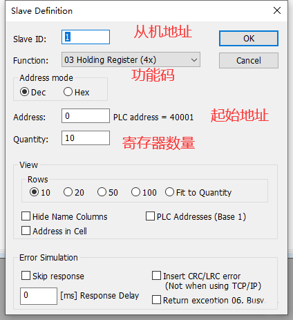 點擊Setup----slave definition 設置從機數據