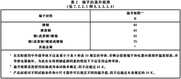 在表6中,如果內裝元件的端子同時也是外部絕緣導體的端子,則應采用較低的溫升極限值,溫升限值是元件制造商規定的最大溫升和70K之間的較小值,所以即使是安裝在柜內的低壓元器件,其端子溫升要求和GB/T14048.1沒有差異。