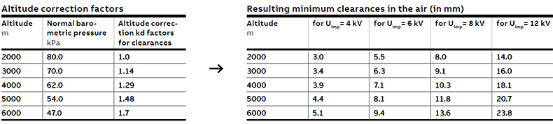 例如當(dāng)海拔為2000米時(shí),電氣間隙的倍增系數(shù)為1,當(dāng)海拔為4000米時(shí),如果還想保持原來的額定沖擊耐受電壓值,其電氣間隙需要增加至原來電氣間隙的1.29倍。