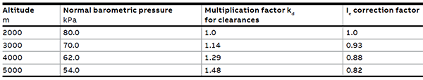 其中H為海拔高度,m在低壓一般取0.5,例如對(duì)于4000米海拔時(shí)Ka系數(shù)為1.28,意味著如果原來低壓電器的額定絕緣電壓為690V(2000米海拔),那么4000米海拔時(shí)其額定絕緣電壓要達(dá)到690V×1.28≈883.2V。