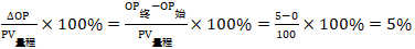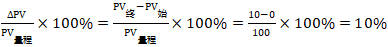 在本例中,過(guò)程變量的量程范圍為0~100,過(guò)程變量量程為100-0=100。過(guò)程變量變化占量程的百分比為: