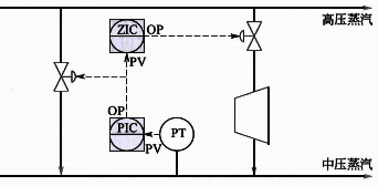 圖3的中壓蒸汽壓力會首先使用減溫減壓閥進行快速控制,然后通過閥位控制調節透平在保證中壓蒸汽精確控制的前提下進行優化節能。當中壓蒸汽用量增加時中壓蒸汽壓力降低,壓力控制回路首先打開減溫減壓閥以快速維持中壓蒸汽穩定,當減溫減壓閥開度超過閥位控制設定值時,閥位控制器會緩慢開大到透平的蒸汽調節閥以更節能方式產生中壓蒸汽,然后壓力控制會減小減溫減壓閥的開度以維持中壓蒸汽。反之亦然。