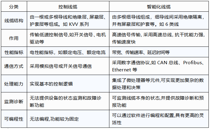 表1  控制線纜與智能化線纜的主要區別