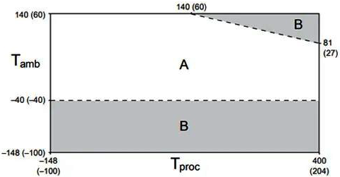 如下環境和過程溫度限制圖僅用作一般指導,如果過程條件接近灰色區域,請咨詢技術支持部門。