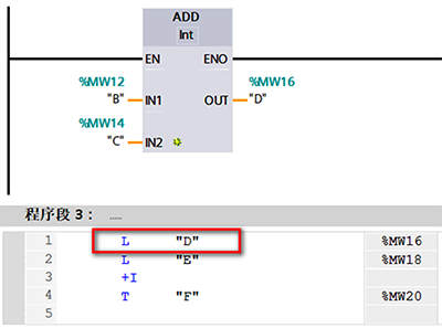 S7-300/400不同的程序段可以使用不同編程語言,我們來看下面這段程序。