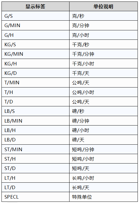 變送器為質量流量測量單位提供了一組標準的測量單位,以及一個由用戶定義的特殊測量單位。