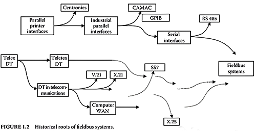 現場總線的起源來自四個方面的技術進步:基于電話網絡的數據傳輸協議,如V.21、X.21等,是現場總線串行數據傳輸的鼻祖。實驗測量儀器和計算機外設的并行總線接口標準化和數據實時傳輸。電子工程師定義標準化的通訊接口的理念也被現場總線繼承了。另外多個空間上分布的多個實驗儀器數據如何多站multidrop實時傳輸的標準,如用于核物理的計算機自動測量和控制CAMAC標準和電子測試設備總線GPIB,也建立起來了。計算機科學理論的發展OSI模型自頂向下的分層設計理念,后來成為了現場總線分層設計的核心指導思想。電子技術的發展,集成電路微型化、I2C、微處理器、連接器技術、RS-485差分信號抗干擾,成為后來總線標準的硬件技術的基石。