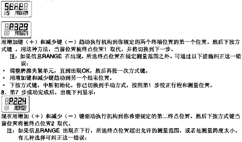 利用這一功能,不需硬性驅(qū)動執(zhí)行機構(gòu)到終點位置即可進行初始化。桿的開始和終止位置可手工設(shè)定。初始化剩下的步驟(控制參數(shù)最佳化)如同自動初始化一樣自動進行。