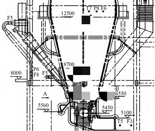 圖3 爐膛煙氣系統(tǒng)溫度測點圖