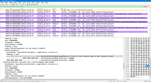 進一步探究發現,控制器發送Read.Req給智能設備以獲取詳細診斷信息,最終確定故障為擴展通道的診斷,即ExtChannelDiagnosis(0x8002),錯誤類型為“Multiple interface mismatch”。這也與控制器診斷緩沖區中的提示Multi-interface mismatch-inconsistent parameterization for sending LLDP data”一致。