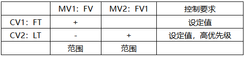 這個方案如果用APC如何實現呢?變量和模型都不需要變化,只需要將LT這個CV設置成高優先級就能實現上述復雜控制方案。如何時候首先保證液位在設定值,如果有自由度則保證FT也在設定值,否則自動放棄流量控制。