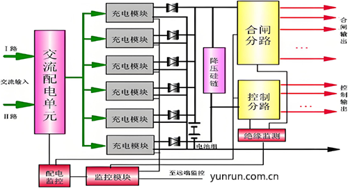 直流屏大致的邏輯關系可參照如下示意圖: