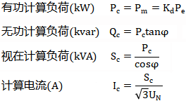1、計(jì)算所有設(shè)備負(fù)荷即有功功率(P),按需用系數(shù)法計(jì)算各設(shè)備組實(shí)際有功功率。