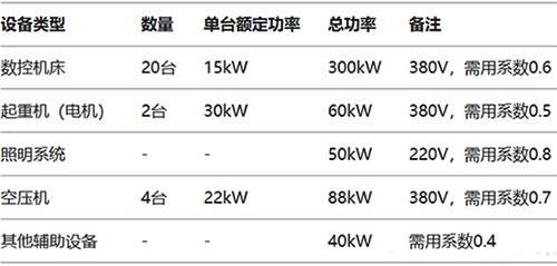 案例背景:某新建機(jī)械加工廠需配置供電變壓器,設(shè)備清單如下,計(jì)算所需供電變壓器容量為多少?