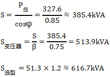 2、計(jì)算視在功率(S)。先確定功率因數(shù)(cosφ),工廠動(dòng)力設(shè)備平均功率因數(shù)取0.85;照明系統(tǒng)功率因數(shù)取0.9;我們綜合功率因數(shù)按加權(quán)平均計(jì)算,簡化為0.85。然后還要考慮變壓器的負(fù)載率與余量。負(fù)載率(β),通常取0.7~0.8(避免長期滿載運(yùn)行),本例取0.75;預(yù)留擴(kuò)容余量:一般可按20%裕量。
