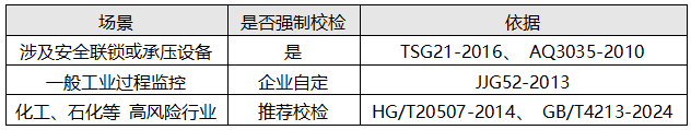 若壓力表與承壓設備(如氣動執行機構的安全保護系統)直接相關,可能被歸類為安全附件,需強制定期檢定。