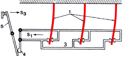 三相過載情況下雙金屬片同時彎曲推動脫扣板動作(圖7),如果是缺相情況下,非故障相雙金屬片彎曲推動脫扣板動作(圖8),過載和缺相保護動作時其NO觸點變為常閉,NC觸點變為常開,NC觸點斷開接觸器線圈供電,接觸器分斷過載電流。