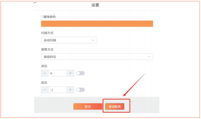 :點(diǎn)擊該按鍵,可彈出如下所示窗口,用于設(shè)置或更改物料名稱、物料密度、罐體顏色,以及進(jìn)行電流配置。刷新鍵