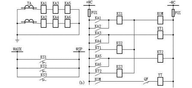 當KAC由跳閘位置繼電器的KQT啟動時,KQT線圈的一端應接至SQS與QF之間。如按以往接線,接于SQS之前,當KAC動作,重合于永久性故障后,此時彈簧貯能釋放,SQS打開,KQT失電,斷開KAC的啟動回路,重合閘繼電器中的電容又重新充電足夠時,待彈簧重新貯能后,SQS閉合,KQT線圈帶電,KAC啟動,又進行一次重合閘。此種情況,如不及時斷開控制開關,還會反復進行多次。