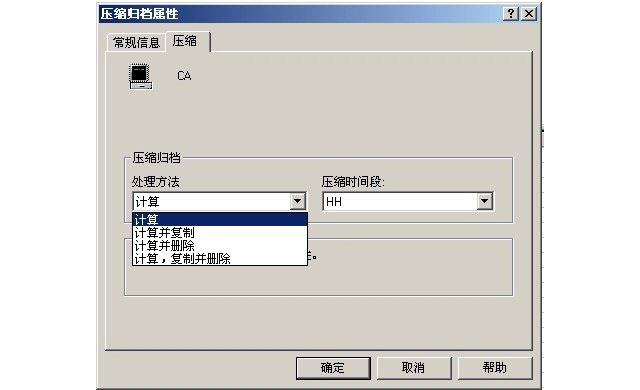 其次,壓縮歸檔的處理方法,有四種不同的屬性設(shè)置,應(yīng)正確選擇。屬性設(shè)置如圖所示: