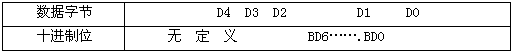 數據段的D4、D3、D2、D1、D0五個字節組成十位流量百分比測量數據,每字節表示兩位十進制數,每字節表示的十進制數值范圍:0-99。