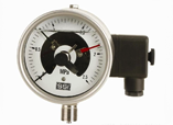 電接點(diǎn)壓力表是在彈簧管壓力表的基礎(chǔ)上增加了一套電接點(diǎn)裝置,通過電接點(diǎn)的通、斷信號來對被測壓力進(jìn)行控制或報(bào)警。壓力測量機(jī)構(gòu)的維修可參考《彈簧管壓力表指針安裝與刻度誤差調(diào)整》。